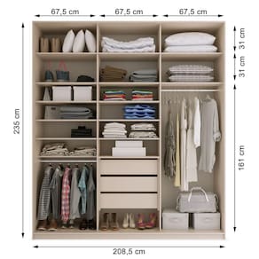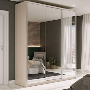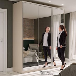 O Guarda Roupa Zermatt conta com 3 portas de correr com espelho. Produzido em MDP com acabamento melamínico BP, proporciona resistência e durabilidade ao produto. Modelo com corrediças telescópicas em aço e rolamentos de alto padrão. Ideal para quem busca espaço e qualidade. Com 2,35m de por 2,05m de , o produto possui amplo espaço interno. Acompanhado de 3 gavetas, cabideiros e prateleiras removíveis para uso geral. O móvel é lindo e certamente atenderá suas expectativas! Acabamento da Prateleira: BP Melamínico Escala de Brilho da Prateleira: Fosco Possui Cabideiros: 02 Acabamento da Gaveta: BP Melamínico Escala de Brilho da Gaveta: Fosco Possui Organizador de Gaveta: Não Acabamento da Porta: BP Melamínico Escala de Brilho da Porta: Fosco Material do Puxador da Porta: : 235 cm do Espelho: 223 cm dos Pés: 6 cm Ambiente Principal: Quarto calculo: unidade Complexidade da Montagem: Média: pode ser montado por mais de uma pessoa e/ou necessite de maior conhecimento para montagem Cr: Bege Cr do Produto: Bege Cr Interna: Bege Escala de Brilho: Fosco Espessura do Espelho: 3 mm Estilo: Contemporâneo Formato do Espelho: Retangular Gaveta com Chave: Não Itens Inclusos: 1 Guarda Roupa, Kit Ferragens e Manual de Montagem : 208,5 cm do Espelho: 60 cm Linha ou Coleção: Zermatt Manual de Montagem e Instalação: https://cdn2.madeiramadeira.com.br/atributo/tom-da-Cr/717355-manual-roupeiro-zermatt-3-portas.pdf Material da Gaveta: MDP Material da Porta: MDP Material da Prateleira: MDP Material dos Pés: MDP Material Principal: MDP Montagem Flex: Nao Necessita Montagem: Sim Origem do Produto: Nacional Peso: 147 kg Peso Máximo por Gaveta: 25 kg Peso Máximo por Prateleira: 20 kg Possui Calceiros: Não Possui Espaço para Vestidos Longos: Sim Possui Espelho: Sim Possui Espelho Interno: Sim Possui Ganchos: Não Possui Gavetas: 03 Possui Pés: 02 Possui Portas: 03 Possui Prateleiras: 14 Possui Sapateira: Sim : 60 cm Quantidade de Espelho: 03 Espelhos com Tamanhos Iguais Recomendações de Uso, Manutenção e Limpeza: Pano úmido Sapatas Niveladoras: Não Sistema de Montagem: Parafusos, Cavilhas e Minifix status-cadastro: Aprovado Tamanho: Tipo de Corrediça da Gaveta: Metálica Telescópica Tipo de Dobradiça/Corrediça da Porta: Plástica Tipo de Fixação do Espelho: Silicone Tipo de Gaveta: Interna Tipo de Guarda-Roupa: Casal Tipo de Porta: Correr Tipo de Puxador da Gaveta: Não Possui Tipo de Puxador da Porta: Embutido