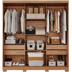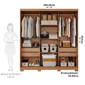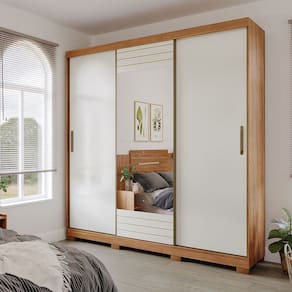 Guarda Roupa 100% MDF, espaçoso, com divisórias internas pensadas para uma perfeita organização. As portas de correr oferecem um ganho de espaço no ambiente e ainda os tornam mais elegantes e práticos. Portas com perfil e trilhos em alumínio na cor bronze, puxadores em ABS e detalhe em baixo relevo, um toque sofisticado e charmoso. O espelho na porta central proporciona reflexo de corpo inteiro. Os acessórios são de qualidade superior, roldanas com regulagem para pisos desnivelados e rolamento para deslize suave. Suas 4 gavetas internas contam com corrediças metálicas telescópicas. Os Cabideiros são em alumínio com suportes metálicos. Acabamento da Prateleira: Pintura UV Escala de Brilho da Prateleira: Fosco Possui Cabideiros: Sim Acabamento da Gaveta: Pintura UV Escala de Brilho da Gaveta: Fosco Material do Puxador da Gaveta: MDF Possui Organizador de Gaveta: Não Acabamento da Porta: Pintura UV Escala de Brilho da Porta: Brilhante Material do Puxador da Porta: ABS Acabamento dos Pés: Impressão Altura do Espelho: 71,1 cm Altura dos Pés: 5 cm Ambiente Principal: Quarto codigo_ean: 7900288152275 Complexidade da Montagem: Alta: deve ser montado por um montador especializado Cor: Cinamomo/Off White Cor da Porta: Off White Cor do Produto: Cinamomo/Off White Cor Interna: Cinamomo Escala de Brilho: Brilhante Espessura da Estrutura (mm): 12 mm Espessura das Portas (mm): 15 mm Espessura das Prateleiras (mm): 12 mm Espessura do Espelho: 3 mm Espessura do Fundo (mm): 2,5 mm Espessura do Fundo das Gavetas (mm): 2,5 mm Formato do Espelho: Retangular Gaveta com Chave: Não Itens Inclusos: 1 Guarda-roupa, Kit ferragens e Manual de Montagem. Largura do Espelho: 66,3 cm Linha ou Coleção: Buzios Manual de Montagem e Instalação: https://product-hub-prd.madeiramadeira.com.br/422857137/documents/43bc0f27-a7a0-4ea0-a9dd-912007cc6a21a9d2735c1fec99871746727223.pdf Marca: Espresso Móveis Material da Gaveta: MDF Material da Porta: MDF Material da Prateleira: MDF Material dos Pés: ABS Material Principal: MDF modular: Não Necessita Montagem: Sim Origem do Produto: Nacional Peso: 138,9 kg Peso Máximo por Gaveta: 5 kg Peso Máximo por Prateleira: 5 kg Porta Janelada: Não Possui Calceiros: Não Possui Capelinha: Não Possui Espaço para Vestidos Longos: Não Possui Espelho: Sim Possui Espelho Interno: Não Possui Ganchos: Não Possui iluminação: Não Possui Nichos: Não Possui Painel de TV: Não Possui Penteadeira: Não Possui Pés: 08 Possui Portas: Sim Possui Prateleiras: Sim Possui Sapateira: Não Produto Montado: Sim Quantidade de Cabideiros: 02 Cabideiros Quantidade de Espelho: 01 Quantidade de Gavetas: 04 Gavetas Quantidade de Portas com Espelhos: 1 Porta com Espelho Quantidade de Prateleiras: 03 Prateleiras Recomendações de Uso, Manutenção e Limpeza: Para limpeza utilizar somente pano limpo e macio, ligeiramente umedecido em água (apenas o bastante para remover a poeira), seguido de um pano seco. Sapatas Niveladoras: Não Sistema de Montagem: Parafusos autoatarraxantes, conjuntos minifix, cavilhas de madeira, acessórios plásticos e metálicos Tipo de Corrediça da Gaveta: Metálica Telescópica Tipo de Dobradiça/Corrediça da Porta: Telescópica Tipo de Fixação do Espelho: Parafusos Tipo de Gaveta: Interna Tipo de Guarda-Roupa: Casal Tipo de Puxador da Gaveta: Não Possui Tipo de Puxador da Porta: Externo
