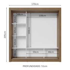 Medidas totais: 205 cm de altura x 170 cm de largura x 51 cm de profundidade.