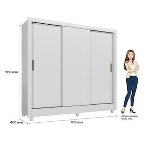 Guarda Roupa Casal 3 portas de correr com pés Italia Branco Brilho - Santos Andirá