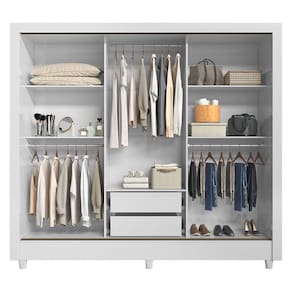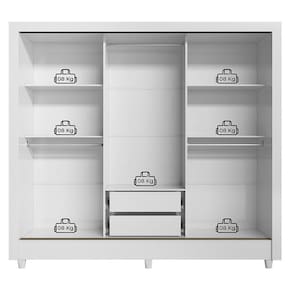 Guarda Roupa Casal 3 portas de correr com pés Italia Branco: O Itália 3 portas de correr é ideal para quem tem pouco espaço e quer funcionalidade. Com gavetas internas, cabideiros e a opção de espelho, suas portas de correr economizam espaço sem perder o acabamento brilhante e o design caprichado.