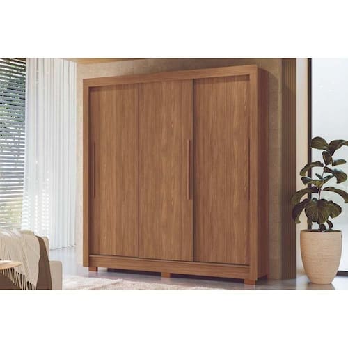 Guarda Roupa Casal 3 Portas De Correr E 2 Gavetas C/ Pés Maringá Jatobá - Santos Andirá