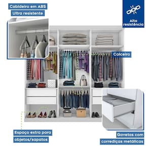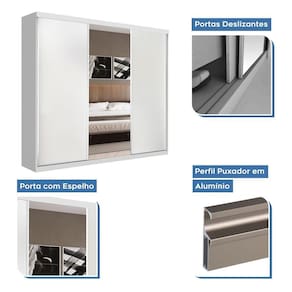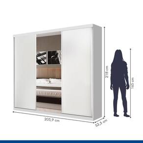 Guarda Roupa Casal 3 Portas De Correr E 3 Espelhos Evidence Minastex Branco Por detrás de todo quarto organizado há um móvel resistente e de qualidade. Com este magnífico Guarda Roupa Evidence o espaço ganhará contornos mais sofisticados e ficará muito mais organizado. Tenha roupas e acessórios sempre ao seu alcance. Aproveite! Dimensões: Altura; 218 cm Largura; 205,9 cm Profundidade; 53,5 cm