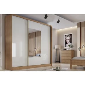Guarda Roupa Casal 3 Portas De Correr E 4 Gavetas C- Espelho Arezzo-medelim Cumaru-fendi - Horizonte - Branco