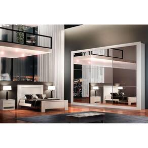 Guarda Roupa Casal 3 Portas De Correr E 4 Gavetas C/ Espelho Veneza Gold Branco - Rufato