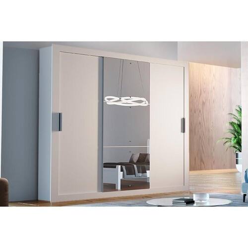 Guarda Roupa Casal 3 Portas De Correr E 4 Gavetas C/ Espelho Veneza Luxo Branco - Rufato