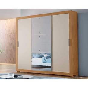 Guarda Roupa Casal 3 Portas De Correr E 4 Gavetas C/ Pés Veneza Luxo Naturale/off White - Rufato