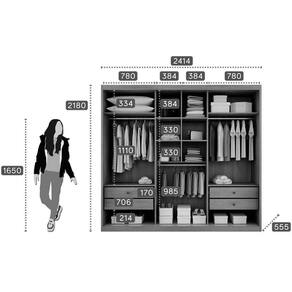 Dimensões(Cm): Comprimento(Profundidade): 55,5cm x Largura: 241,2cm x Altura: 218cm