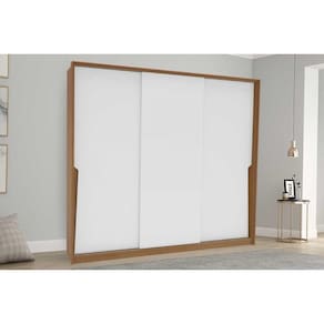 Guarda Roupa Casal 3 Portas de Correr e 4 Gavetas Porto Freijo/Branco - Politorno