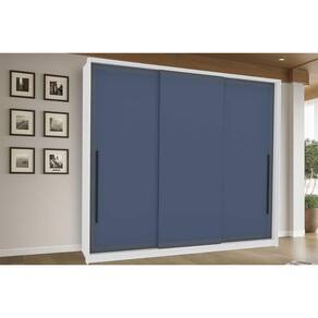 Guarda Roupa Casal 3 Portas de Correr e 4 Gavetas Valência Branco/Azul - Politorno