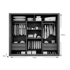 Dimensões(Cm): Comprimento(Profundidade): 48cm x Largura: 188cm x Altura: 208cm