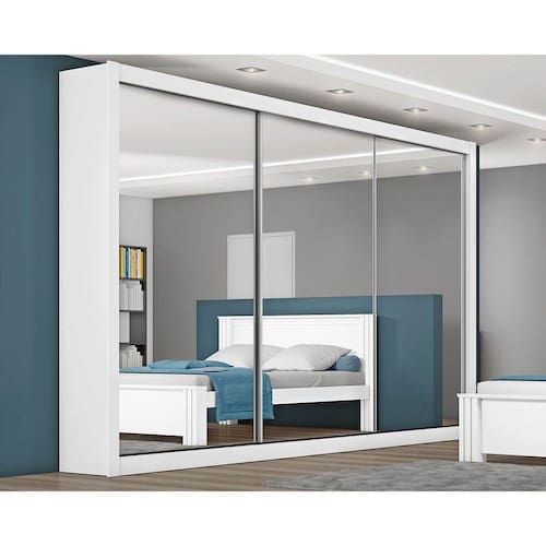 Guarda Roupa Casal 3 Portas de Correr e 6 Gavetas c/3 Espelhos Toronto Branco - Europa