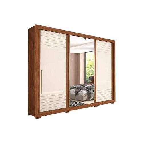 Guarda Roupa Casal 3 Portas de Correr e 6 Gavetas c/ Espelho e Pés Vitória Avelã/Off White - Panan Marca: Panan
