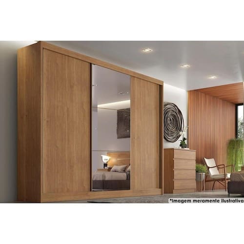 Guarda Roupa Casal 3 Portas de Correr e 6 Gavetas c/ Espelho Natus Freijo Cumaru - Novo Horizonte
