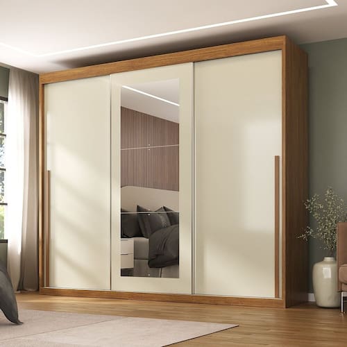 Seu designer inovador com padrões de cores modernas se aperfeiçoa perfeitamente em qualquer espaço. Acabamento da Prateleira: Pintura Escala de Brilho da Prateleira: Fosco Possui Cabideiros: 02 Acabamento da Gaveta: Pintura Escala de Brilho da Gaveta: Fosco Possui Organizador de Gaveta: Sim Acabamento da Porta: Pintura UV Escala de Brilho da Porta: Brilhante Altura do Espelho: 58 cm Ambiente Principal: Quarto codigo_ean: 7900288083685 Complexidade da Montagem: Média: pode ser montado por mais de uma pessoa e/ou necessite de maior conhecimento para montagem Cor: Cinamomo/ Off White Cor do Produto: Cinamomo/ Off White Cor Interna: Cinza Escala de Brilho: Brilhante Espessura da Estrutura (mm): 12 mm Espessura das Portas (mm): 15 mm Espessura das Prateleiras (mm): 12 mm Espessura do Espelho: 3 mm Espessura do Fundo (mm): 3 mm Espessura do Fundo das Gavetas (mm): 3 mm Formato do Espelho: Retangular Gaveta com Chave: Não Itens Inclusos: 1 Guarda Roupa e 1 Manual de Montagem Largura do Espelho: 62 cm Linha ou Coleção: Spazio Manual de Montagem e Instalação: https://cdn2.madeiramadeira.com.br/atributo/maxel/2728403-2864-17412935355342.pdf Marca: Maxel Material da Gaveta: MDP Material da Porta: MDP Material da Prateleira: MDP Material Principal: MDP modular: Não Necessita Montagem: Sim Origem do Produto: Nacional Peso: 177,4 kg Peso Máximo por Gaveta: 3 kg Peso Máximo por Prateleira: 7 kg Possui Calceiros: Não Possui Espelho: Sim Possui Pés: Não Possui Portas: Sim Possui Prateleiras: Sim Quantidade de Cabideiros: 02 Cabideiros Quantidade de Espelho: 03 Espelhos com Tamanhos Iguais Quantidade de Gavetas: 06 Gavetas Quantidade de Portas com Espelhos: 1 Porta com Espelho Recomendações de Uso, Manutenção e Limpeza: Pano seco ou levemente umedecido, não usar produtos abrasivos Sistema de Montagem: Parafusos, cavilhas, pregos e dispositivos plásticos. Tipo de Corrediça da Gaveta: Metálica Telescópica Tipo de Dobradiça/Corrediça da Porta: Metálica Tipo de Fixação do Espelho: Parafusos Tipo de Gaveta: Interna Tipo de Guarda-Roupa: Casal Tipo de Puxador da Gaveta: Não Possui Tipo de Puxador da Porta: Externo