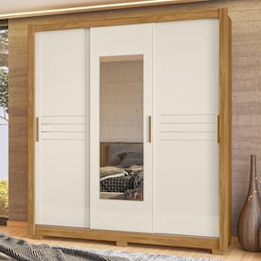 Já o ótimo compartimento interno oferece prateleiras e gavetas espaçosas para armazenar tudo de forma organizada, ficando visualmente fácil na hora de escolher tudo. Para completar, as portas de correr deslizam suavemente e ainda otimizam espaço, principalmente se for um quarto de casal pequeno. Demais não é mesmo?!
