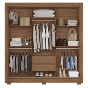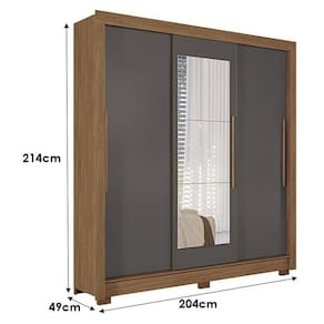 Guarda Roupa Casal 3 portas de correr com espelho Maringá com espelho Jatobá Grafite - Santos Andirá