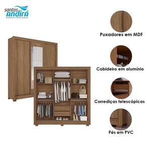 Guarda Roupa Casal 3 portas de correr com espelho Maringá com espelho Jatobá - Santos Andirá