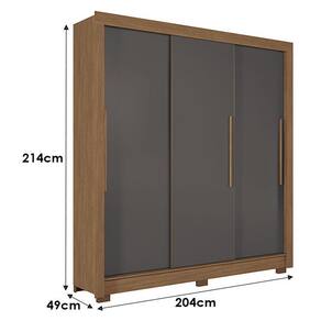 Guarda Roupa Casal 3 portas de correr Maringá Jatobá Grafite - Santos Andirá