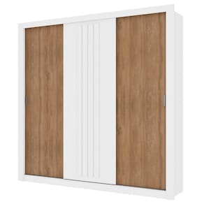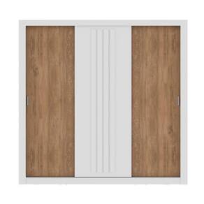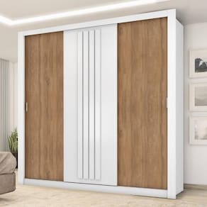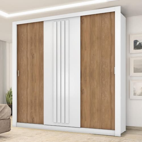 Guarda Roupa Casal 3 Portas Doha Carraro Ripado Branco Com Freijó