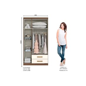 Guarda Roupa Solteiro 3 Portas e 2 Gavetas Açaí DA133 Branco - Henn