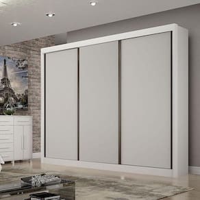 Guarda Roupa Casal 3 Portas Gold Freijó Off White Leifer Móveis
