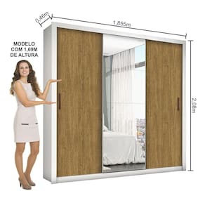 Guarda Roupa Max Plus com 3 portas de correr, 208cmx185cmx46cm. Possui 4 gavetas, 3 prateleiras e 3 cabideiros em alumínio. Além de ser um produto lindo e funcional, proporciona ao cliente praticidade ao acomodar todas as roupas de maneira organizada. As roldanas em aço e o trilho em alumínio tem a função de potencializar o deslizar das portas. Acabamento da Prateleira: Pintura Escala de Brilho da Prateleira: Semi-Brilho Possui Cabideiros: Sim Acabamento da Gaveta: Pintura Escala de Brilho da Gaveta: Semi-Brilho Possui Organizador de Gaveta: Não Acabamento da Porta: Pintura Escala de Brilho da Porta: Semi-Brilho Material do Puxador da Porta: Plástico Altura do Espelho: 58,9 cm Ambiente Principal: Quarto codigo_ean: 7909903595145 Complexidade da Montagem: Média: pode ser montado por mais de uma pessoa e/ou necessite de maior conhecimento para montagem Cor: Branco Cinamomo Cor do Produto: Branco Cinamomo Cor Interna: Branco Escala de Brilho: Semi-Brilho Espessura do Espelho: 3 mm Fita Integrada: Não Formato do Espelho: Retangular Gaveta com Chave: Não Itens Inclusos: 1 Guarda Roupa, Kit Ferragens e Manual de Montagem Largura do Espelho: 48,5 cm Linha ou Coleção: Max Plus Manual de Montagem e Instalação: https://product-hub-stg.madeiramadeira.com.br/810337.pdf Material da Gaveta: MDP Material da Porta: MDP Material da Prateleira: MDP Material Principal: MDP modular: Não Necessita Montagem: Sim Origem do Produto: Nacional Peso: 117 kg Peso Máximo por Gaveta: 5 kg Peso Máximo por Prateleira: 5 kg Possui Calceiros: 01 Possui Espaço para Vestidos Longos: Não Possui Espelho: Sim Possui Espelho Interno: Não Possui Ganchos: Não Possui Pés: Não Possui Portas: Sim Possui Prateleiras: Sim Possui Sapateira: Não Produto Montado: Sim Quantidade de Espelho: 04 Espelhos com Tamanhos Iguais Quantidade de Gavetas: 04 Gavetas Quantidade de Prateleiras: 03 Prateleiras Recomendações de Uso, Manutenção e Limpeza: Limpar com flanela ou pano macio seco. Não utilizar produtos abrasivos, desengordurantes, álcool ou solvente. Não expor o produto diretamente à luz solar e à umidade. Sistema de Montagem: Parafusos Tipo de Corrediça da Gaveta: Metálica Simples Tipo de Dobradiça/Corrediça da Porta: Alumínio Tipo de Fixação do Espelho: Fita Dupla Face Tipo de Gaveta: Interna Tipo de Guarda-Roupa: Casal Tipo de Puxador da Gaveta: Não Possui Tipo de Puxador da Porta: Externo