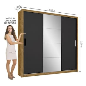 Guarda Roupa Max Plus com 3 portas de correr, 208cmx185cmx46cm. Possui 4 gavetas, 3 prateleiras e 3 cabideiros em alumínio. Além de ser um produto lindo e funcional, proporciona ao cliente praticidade ao acomodar todas as roupas de maneira organizada. As roldanas em aço e o trilho em alumínio tem a função de potencializar o deslizar das portas. Acabamento da Prateleira: Pintura Escala de Brilho da Prateleira: Semi-Brilho Possui Cabideiros: Sim Acabamento da Gaveta: Pintura Escala de Brilho da Gaveta: Semi-Brilho Possui Organizador de Gaveta: Não Acabamento da Porta: Pintura Escala de Brilho da Porta: Semi-Brilho Material do Puxador da Porta: Plástico Altura do Espelho: 58,9 cm Ambiente Principal: Quarto codigo_ean: 7909903595213 Complexidade da Montagem: Média: pode ser montado por mais de uma pessoa e/ou necessite de maior conhecimento para montagem Cor: Cinamomo Preto Cor do Produto: Cinamomo Preto Cor Interna: BRANCO Escala de Brilho: Semi-Brilho Espessura do Espelho: 3 mm Fita Integrada: Não Formato do Espelho: Retangular Gaveta com Chave: Não Itens Inclusos: 1 Guarda Roupa, Kit Ferragens e Manual de Montagem Largura do Espelho: 48,5 cm Linha ou Coleção: Max Plus Manual de Montagem e Instalação: https://product-hub-stg.madeiramadeira.com.br/810337.pdf Material da Gaveta: MDP Material da Porta: MDP Material da Prateleira: MDP Material Principal: MDP modular: Não Necessita Montagem: Sim Origem do Produto: Nacional Peso: 117 kg Peso Máximo por Gaveta: 5 kg Peso Máximo por Prateleira: 5 kg Possui Calceiros: 01 Possui Espaço para Vestidos Longos: Não Possui Espelho: Sim Possui Espelho Interno: Não Possui Ganchos: Não Possui Pés: Não Possui Portas: Sim Possui Prateleiras: Sim Possui Sapateira: Não Produto Montado: Sim Quantidade de Espelho: 04 Espelhos com Tamanhos Iguais Quantidade de Gavetas: 04 Gavetas Quantidade de Prateleiras: 03 Prateleiras Recomendações de Uso, Manutenção e Limpeza: Limpar com flanela ou pano macio seco. Não utilizar produtos abrasivos, desengordurantes, álcool ou solvente. Não expor o produto diretamente à luz solar e à umidade. Sistema de Montagem: Parafusos Tipo de Corrediça da Gaveta: Metálica Simples Tipo de Dobradiça/Corrediça da Porta: Alumínio Tipo de Fixação do Espelho: Fita Dupla Face Tipo de Gaveta: Interna Tipo de Guarda-Roupa: Casal Tipo de Puxador da Gaveta: Não Possui Tipo de Puxador da Porta: Externo