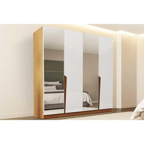 Guarda Roupa Casal 4 Portas (2 c/ Espelho) e 4 Gavetas Porto Freijo/Branco - Politorno