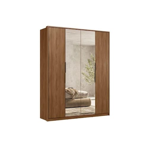 Guarda Roupa Solteiro 4 Portas (2 c/ Espelhos) e 3 Gavetas Attore Nogueira - Demóbile
