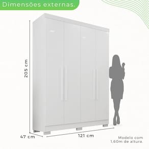 Este lindo Guarda Roupa 4 Portas 2 Gavetas França é um produto de excelente qualidade, diferenciado pela sua resistência, durabilidade, funcionalidade e beleza, ele é a melhor opção para deixar seu dormitório muito mais arrumado e convidativo. Com corrediças telescópicas que permitem uma abertura total das gavetas, parte interna espaçosa, divisões internas que oferecem praticidade e organização, puxadores de madeira que garante maior durabilidade, suporte embaixo das gavetas para dar uma sustentação reforçada e cabideiro em alumínio. Se encaixa facilmente em vários estilos de decoração com cores modernas. Aproveite, você merece! Acabamento da Prateleira: Pintura UV Escala de Brilho da Prateleira: Brilhante Possui Cabideiros: 01 Acabamento da Gaveta: Pintura UV Material do Puxador da Gaveta: MDF Possui Organizador de Gaveta: Não Acabamento da Porta: Pintura UV Escala de Brilho da Porta: Brilhante Material do Puxador da Porta: MDF Altura dos Pés: 4 Ambiente Principal: Quarto Complexidade da Montagem: Alta: deve ser montado por um montador especializado Cor: Branco Cor do Produto: Branco Escala de Brilho: Brilhante Gaveta com Chave: Não Itens Inclusos: 1 Guarda Roupa, kit ferragens e manual de montagem Linha ou Coleção: FRANÇA Manual de Montagem e Instalação: https://cdn2.madeiramadeira.com.br/atributo/salleto/1715115-roupeiro-recife-4-portas.pdf Material da Gaveta: MDP Material da Porta: MDP Material da Prateleira: MDP Material dos Pés: Polipropileno Material Principal: MDP modular: Não Necessita Montagem: Sim Origem do Produto: Nacional Peso: 68.2 Peso Máximo por Gaveta: 5 Peso Máximo por Prateleira: 3 Possui Calceiros: Não Possui Espelho: Não Possui Pés: 06 Possui Portas: Sim Possui Prateleiras: Sim Quantidade de Gavetas: 02 Gavetas Quantidade de Prateleiras: 05 Prateleiras Recomendações de Uso, Manutenção e Limpeza: Limpar com flanela ou pano Pano levemente umedecido e pano seco. Não utilizar produtos de limpeza. Não utilizar produtos abrasivos. Não expor o produto diretamente à luz solar e à umidade. Sistema de Montagem: Parafusos, Cavilhas, Dobradiças e Puxadores. Tipo de Corrediça da Gaveta: Metálica Telescópica Tipo de Dobradiça/Corrediça da Porta: Metálica Tipo de Gaveta: Interna Tipo de Guarda-Roupa: Casal Tipo de Puxador da Gaveta: Externo Tipo de Puxador da Porta: Externo