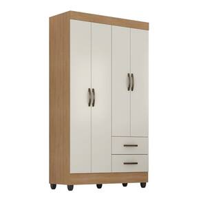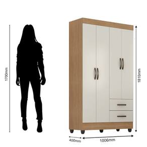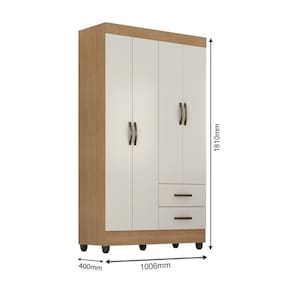 O roupeiro possui 4 portas convencionais, 2 gavetas externas com sistema de abertura com corrediças metálicas, 4 prateleiras, suportando até 2kg. Acabamento da Prateleira: Pintura UV Escala de Brilho da Prateleira: Semi-Fosco Possui Cabideiros: 01 Acabamento da Gaveta: Pintura UV Escala de Brilho da Gaveta: Semi-Fosco Material do Puxador da Gaveta: PVC Possui Organizador de Gaveta: Não Acabamento da Porta: Pintura UV Escala de Brilho da Porta: Semi-Fosco Material do Puxador da Porta: PVC Altura dos Pés: 7 cm Ambiente Principal: Quarto codigo_ean: 7909903746882 Complexidade da Montagem: Média: pode ser montado por mais de uma pessoa e/ou necessite de maior conhecimento para montagem Cor: Marrom/Off White Cor do Produto: Marrom/Off White Cor Flex: Não Cor Interna: Marrom Escala de Brilho: Semi-Fosco Gaveta com Chave: Não Itens Inclusos: 1 Guarda Roupa, Kit Ferragens e Manual de Montagem Linha ou Coleção: Linha Lite Manual de Especificação Técnica: https://product-hub-prd.madeiramadeira.com.br/915113/documents/ad3b6fbe-1c1a-41b8-bd99-f090e330ff482051066374317183914959642.pdf Manual de Montagem e Instalação: https://product-hub-prd.madeiramadeira.com.br/915113/documents/571129cc-79bf-47f4-9f02-369ec0fa0a72205106537431718391489331.pdf Material da Gaveta: MDP Material da Porta: MDP Material da Prateleira: MDP Material dos Pés: PVC Material Principal: MDP modular: Não Montagem Flex: Não Necessita Montagem: Sim Origem do Produto: Nacional Peso: 46 kg Peso Máximo por Gaveta: 3 kg Peso Máximo por Prateleira: 2 kg Possui Calceiros: Não Possui Espelho: Não Possui Espelho Interno: Não Possui Ganchos: Não Possui iluminação: Não Possui Painel de TV: Não Possui Pés: 04 Possui Portas: Sim Possui Prateleiras: Sim Possui Sapateira: Não Produto Montado: Sim Quantidade de Gavetas: 02 Gavetas Quantidade de Prateleiras: 04 Prateleiras Recomendações de Uso, Manutenção e Limpeza: Limpeza apenas com um pano úmido. Não utilizar produtos químicos ou abrasivos. Sistema de Montagem: Parafusos, Pregos Suporta Até (kg): 25 kg Tipo de Corrediça da Gaveta: Metálica Simples Tipo de Dobradiça/Corrediça da Porta: Metálica Tipo de Gaveta: Externa Tipo de Guarda-Roupa: Solteiro Tipo de Puxador da Gaveta: Externo Tipo de Puxador da Porta: Externo