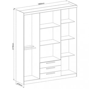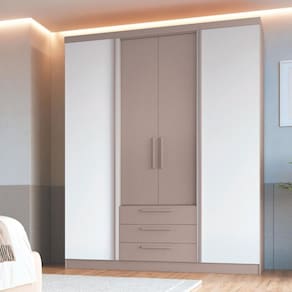 Características: Estrutura de MDP e fundos MDF 3mm 4 Portas 5 prateleiras 3 gavetas Corrediças telescópicas 2 Cabideiros de alumínio Puxadores em MDF
