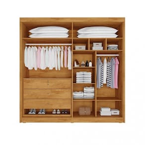 Características: 4 Portas 3 Gavetas, sendo 1 com chave Estrutura em MDF Corrediças telescópicas Prateleira Acabamento em verniz UV Cabideiros de alumínio Puxadores externos em madeira