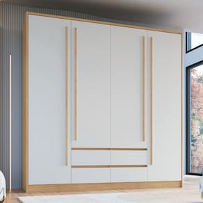O Guarda Roupa Casal 4 Portas 4 Gavetas Astor Moveis Castro combina funcionalidade e design moderno. Possui ampla distribuicao interna com 10 nichos, 3 cabideiros em aluminio e 4 gavetas com corredicas telescopicas que garantem durabilidade. Sua estrutura e em MDP de 12 e 15mm com fundos em MDF 3mm, oferecendo resistencia e qualidade. Conta ainda com puxadores em MDF que agregam elegancia ao acabamento, sendo a escolha ideal para otimizar e organizar seu quarto com sofisticacao.