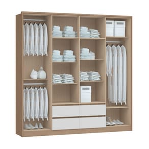 Caracteristicas: 3 Cabideiros em aluminio 4 Gavetas com corredicas telescopicas 10 Nichos 4 Portas Estrutura de MDP 12 e 15mm, fundos MDF 3mm Puxadores em MDF