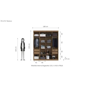 O Guarda-Roupa Berlim 4 portas oferece elegância e praticidade, além de combinar com qualquer ambiente. Este produto apresenta um amplo espaço interno, que conta com cabideiros, prateleiras, calceiros e 4 gavetas que possibilitam uma melhor organização. Acabamento da Prateleira: Pintura Texturizada UV Escala de Brilho da Prateleira: Semi-Brilho Possui Cabideiros: 02 Acabamento da Gaveta: Pintura Texturizada UV Escala de Brilho da Gaveta: Semi-Brilho Possui Organizador de Gaveta: Não Acabamento da Porta: Pintura Texturizada UV Escala de Brilho da Porta: Semi-Brilho Ambiente Principal: Quarto Complexidade da Montagem: Baixa: pode ser montado por uma pessoa sozinha Cor: Nogueira/Off White Cor do Produto: Nogueira/Off White Cor Interna: Lineo Escala de Brilho: Semi-Brilho Gaveta com Chave: Não Itens Inclusos: 1 Guarda Roupa, Kit de Ferragens e Manual de Montagem Manual de Montagem e Instalação: https://cdn2.madeiramadeira.com.br/atributo/herval-edez-rs/984365-manual-ph1717-1.pdf Material da Gaveta: MDP Material da Porta: MDP Material da Prateleira: MDP Material Principal: MDP Necessita Montagem: Sim Origem do Produto: Nacional Peso: 120,65 kg Peso Máximo por Gaveta: 5 kg Possui Calceiros: 04 Possui Espelho: Não Possui Pés: Não Possui Portas: 04 Possui Prateleiras: 11 Recomendações de Uso, Manutenção e Limpeza: Recomenda-se a utilização de pano seco. Sistema de Montagem: Minifix e parafuso Tipo de Corrediça da Gaveta: Metálica Simples Tipo de Dobradiça/Corrediça da Porta: Metálica Tipo de Gaveta: Interna Tipo de Guarda-Roupa: Casal Tipo de Puxador da Gaveta: Não Possui Tipo de Puxador da Porta: Externo