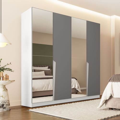 O guarda-roupa 4 portas 4 gavetas Porto com espelho, da Politorno Móveis, une sofisticação, modernidade e praticidade em um único móvel. Com 200,4 cm de altura, 161,2 cm de largura e 46 cm de profundidade, oferece amplo espaço para organizar roupas, calçados e acessórios com eficiência. Suas portas contam com espelhos que ampliam o ambiente e agregam elegância ao design. Produzido em MDP/MDF, possui acabamento em pintura UV e FF, garantindo durabilidade e resistência. As gavetas contam com corrediças telescópicas para um deslizamento suave, enquanto os puxadores embutidos conferem um visual clean e sofisticado. Ideal para quem busca funcionalidade e estilo no quarto. Acabamento da Prateleira: Pintura UV Escala de Brilho da Prateleira: Semi-Fosco Possui Cabideiros: Sim Acabamento da Gaveta: Pintura UV Escala de Brilho da Gaveta: Semi-Fosco Possui Organizador de Gaveta: Não Acabamento da Porta: Pintura UV Escala de Brilho da Porta: Semi-Fosco Altura do Espelho: 191 cm Altura dos Pés: 10 cm Altura Máxima dos Pés: 10.0000 Ambiente Principal: Quarto codigo_ean: 7900288092250 Complexidade da Montagem: Média: pode ser montado por mais de uma pessoa e/ou necessite de maior conhecimento para montagem Cor: Branco/Cinza Cor do Produto: Branco/Cinza Cor do Puxador: Cinamomo Cor Interna: Branco Escala de Brilho: Semi-Fosco Espessura da Estrutura (mm): 15 mm Espessura das Portas (mm): 15 mm Espessura das Prateleiras (mm): 15 mm Espessura do Espelho: 3 mm Espessura do Fundo (mm): 3 mm Espessura do Fundo das Gavetas (mm): 9 mm Fita Integrada: Sim Formato do Espelho: Retangular Gaveta com Chave: Não Itens Inclusos: 1 Guarda-Roupa, Kit de ferragens Largura do Espelho: 39 cm Linha ou Coleção: Porto Manual de Especificação Técnica: https://product-hub-prd.madeiramadeira.com.br/981726/documents/70ae78be-de3b-4c8c-b5d7-a000a1c2ef09275058762241742320970181.pdf Manual de Montagem e Instalação: https://product-hub-prd.madeiramadeira.com.br/981726/documents/0f72419d-6987-41e9-9c4f-5b471d0ce73f2749564622417423167784031.pdf Marca: Politorno Material da Gaveta: MDF/MDP Material da Porta: MDF/MDP Material da Prateleira: MDF/MDP Material dos Pés: MDF Material Principal: MDF/MDP modular: Não Necessita Montagem: Sim Nicho com Cabideiro: Não Origem do Produto: Nacional Peso: 83,9 kg Peso Máximo por Gaveta: 3 kg Peso Máximo por Prateleira: 5 kg Porta Janelada: Não Possui Calceiros: Não Possui Espelho: Sim Possui Pés: Rodapé Possui Portas: Sim Possui Prateleiras: Sim Produto Montado: Sim Quantidade de Cabideiros: 04 Cabideiros Quantidade de Espelho: 04 Espelhos com Tamanhos Iguais Quantidade de Gavetas: 04 Gavetas Quantidade de Portas com Espelhos: 2 Portas com Espelho Quantidade de Prateleiras: 06 Prateleiras Recomendações de Uso, Manutenção e Limpeza: Utilize um pano macio umedecido com água e sabão neutro, seguido de pano seco. Não utilize produtos químicos ou abrasivos para limpeza, pois estes danificam o revestimento do móvel. Sistema de Montagem: Cavilha, Parafuso, Minifix e prego Tipo de Corrediça da Gaveta: Metálica Telescópica Tipo de Dobradiça/Corrediça da Porta: Metálica Tipo de Fixação do Espelho: Fita Dupla Face Tipo de Gaveta: Interna Tipo de Guarda-Roupa: Casal Tipo de Puxador da Gaveta: Não Possui Tipo de Puxador da Porta: Embutido