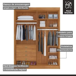 Organize seu quarto com estilo e praticidade com o Guarda-Roupa Casal Eloa, uma peça ideal para quem busca espaço e funcionalidade! Com 4 portas e 4 gavetas, ele oferece amplo espaço para acomodar roupas, acessórios e objetos pessoais, mantendo tudo organizado e ao seu alcance. Seu design moderno e elegante se adapta a qualquer decoração, transformando o ambiente em um espaço sofisticado e acolhedor. O Guarda-Roupa Eloa é perfeito para quem valoriza conforto e eficiência no dia a dia. Não perca a oportunidade de renovar seu quarto com uma solução prática e charmosa. Adquira agora o seu! Acabamento da Prateleira: Pintura Escala de Brilho da Prateleira: Fosco Possui Cabideiros: Sim Acabamento da Gaveta: Pintura UV Escala de Brilho da Gaveta: Fosco Material do Puxador da Gaveta: MDF Possui Organizador de Gaveta: Não Acabamento da Porta: Pintura UV Escala de Brilho da Porta: Fosco Material do Puxador da Porta: MDF Ambiente Principal: Quarto codigo_ean: 7900288000644 Complexidade da Montagem: Alta: deve ser montado por um montador especializado Cor: Cinamomo Cor do Produto: Cinamomo Cor do Puxador: Branco Escala de Brilho: Fosco Espessura da Estrutura (mm): 15 mm Espessura das Portas (mm): 15 mm Espessura das Prateleiras (mm): 15 mm Espessura do Fundo (mm): 2,5 mm Espessura do Fundo das Gavetas (mm): 15 mm Gaveta com Chave: Não Itens Inclusos: 1 Guarda Roupa+ 1 Kit Ferragens + 1 Manual de montagem. Linha ou Coleção: Bergame Manual de Montagem e Instalação: https://product-hub-prd.madeiramadeira.com.br/958023/documents/7f44e2b3-91ce-43b2-91f1-4f137cc9208fanualroupeirobergamo4p2024.pdf Marca: Conquista Móveis Material da Gaveta: MDF Material da Porta: MDF Material da Prateleira: MDF Material Principal: MDF modular: Não Necessita Montagem: Sim Origem do Produto: Nacional Peso: 207 kg Peso Máximo por Gaveta: 5 kg Peso Máximo por Prateleira: 10 kg Possui Calceiros: Não Possui Espelho: Não Possui Pés: Não Possui Portas: Sim Possui Prateleiras: Sim Produto Montado: Sim Quantidade de Cabideiros: 02 Cabideiros Quantidade de Gavetas: 04 Gavetas Quantidade de Prateleiras: 05 Prateleiras Recomendações de Uso, Manutenção e Limpeza: Na limpeza não utilizar produtos químicos e abrasivos usar apenas um pano umedecido para garantir a maior durabilidade do móvel. Sistema de Montagem: Parafusos Tipo de Corrediça da Gaveta: Metálica Telescópica Tipo de Dobradiça/Corrediça da Porta: Telescópica Tipo de Gaveta: Interna Tipo de Guarda-Roupa: Casal Tipo de Puxador da Gaveta: Externo Tipo de Puxador da Porta: Externo