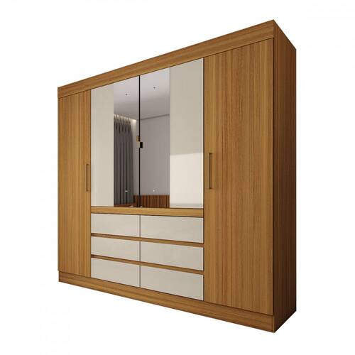 Guarda-Roupa Casal 4 Portas 6 Gavetas com Espelho Demóbile
