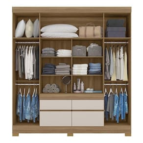Guarda Roupa Casal 4 Portas Bilbao Amêndola Off White com Espelho - Demóbile