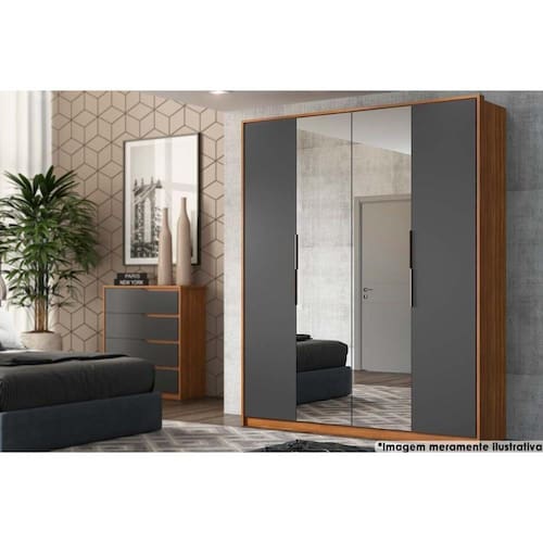 Guarda Roupa Casal 4 Portas c/ 2 Espelhos Attore Amendola/Grafito - Demóbile - Blush