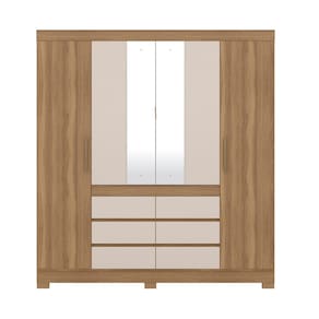 Fabricado em MDP com pintura UV, o móvel conta com 4 portas, sendo portas centrais com espelho, que auxiliam na rotina e ampliam a sensação de espaço no ambiente. Possui gavetas com corrediças metálicas, cabideiros e calceiros metálicos, proporcionando maior praticidade no uso.