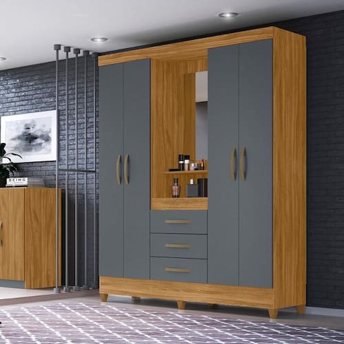 Material: MDP | Cor: Castanho | Cômodo Indicado: Quarto | Dimensões do Guarda Roupa (A X L X P): A 2,04 x L 1,65 x P 0,47 | Puxadores: PVC | Quantidade de Gavetas: 3 | Quantidade de Portas: 4 | Possui Pés: Sim | Tipo de Guarda Roupa: Casal | Garantia do Fabricante: 3 Meses | Modelo: Capri | Peso Total: 89 Kg | Altura do Produto com embalagem (cm): 204 | Peso do Produto (Kg): 91.01 | Largura Produto com embalagem (cm): 165 | Instruções/Cuidados: Evite contato com líquidos. Nada de lavar os móveis. Móveis não gostam de umidade. Não deixe o móvel exposto ao sol. Os acessórios também precisam de limpeza. | Produto precisa de Montagem?: Sim, a montagem é simples mas sugerimos a contratação do nosso serviço de montagem (para os CEPs em que o serviço está disponível) ou de algum experiente de sua preferência | Material para Filtro: MDP | Estado de Origem: PR | Conteúdo da Embalagem: Guarda Roupa Casal 4 portas com espelho 3 gavetas Capri | Altura do Produto (cm): 204 | Comnto do Produto (cm): 47 | Largura do Produto (cm): 165 | Descrição do Tamanho: 47x165x204 cm | Nome do Simples no Fornecedor: Guarda Roupa Casal 4 portas com espelho 3 gavetas Capri | Comnto Produto Com Embalagem (cm): 47 | Peso Produto Com Embalagem (Kg): 91.01 Cor: Freijo / Cinza