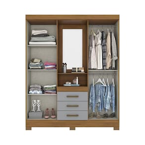 Guarda Roupa Casal 4 Portas Com Espelho 3 Gavetas Ryan Casa 812 Nature Com Cinza