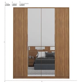 Guarda Roupa Casal 4 Portas Com espelho e 3 Gavetas Attore Demóbile