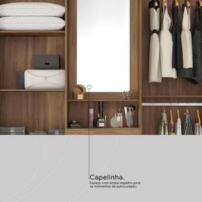 Com quatro portas e três gavetas espaçosas, oferece amplo armazenamento para roupas, acessórios e objetos pessoais.