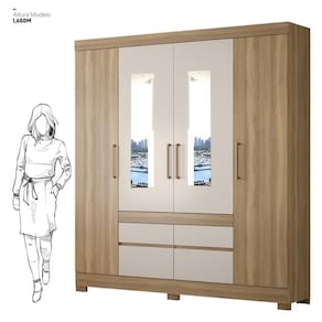 Guarda Roupa Casal 4 Portas Com Espelho e 4 Gavetas Florida Demóbile