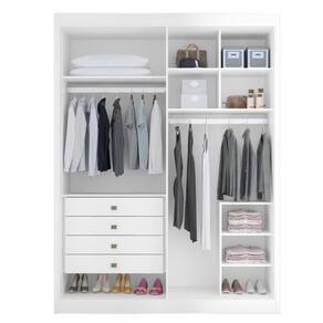 Características: 4 Gavetas com puxadores 4 Nichos 4 Portas 4 Prateleiras Cabideiros em alumínio, suporta 7kg Cada prateleira suporta 10Kg Cada gaveta suporta 5Kg Corrediças telescópicas Dobradiça pressão 35mm Estrutura em MDF 15mm Puxador em madeira