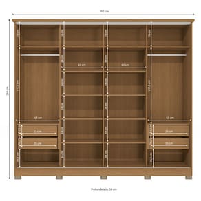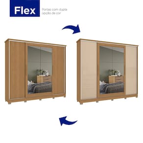 Características: Marca: Kappesberg Modelo: Ambar Flex Tipo: Casal Tipo de porta: Correr Quantidade de portas: 4 portas Quantidade de gavetas: 4 gavetas Quantidade de cabideiros: 2 cabideiros Espelho: Sim Gaveta com chave: Não Tipo de dobradiças: Metálicas Tipo de corrediças: Telescópicas Material da estrutura: MDP Pés: Sim Origem: Nacional